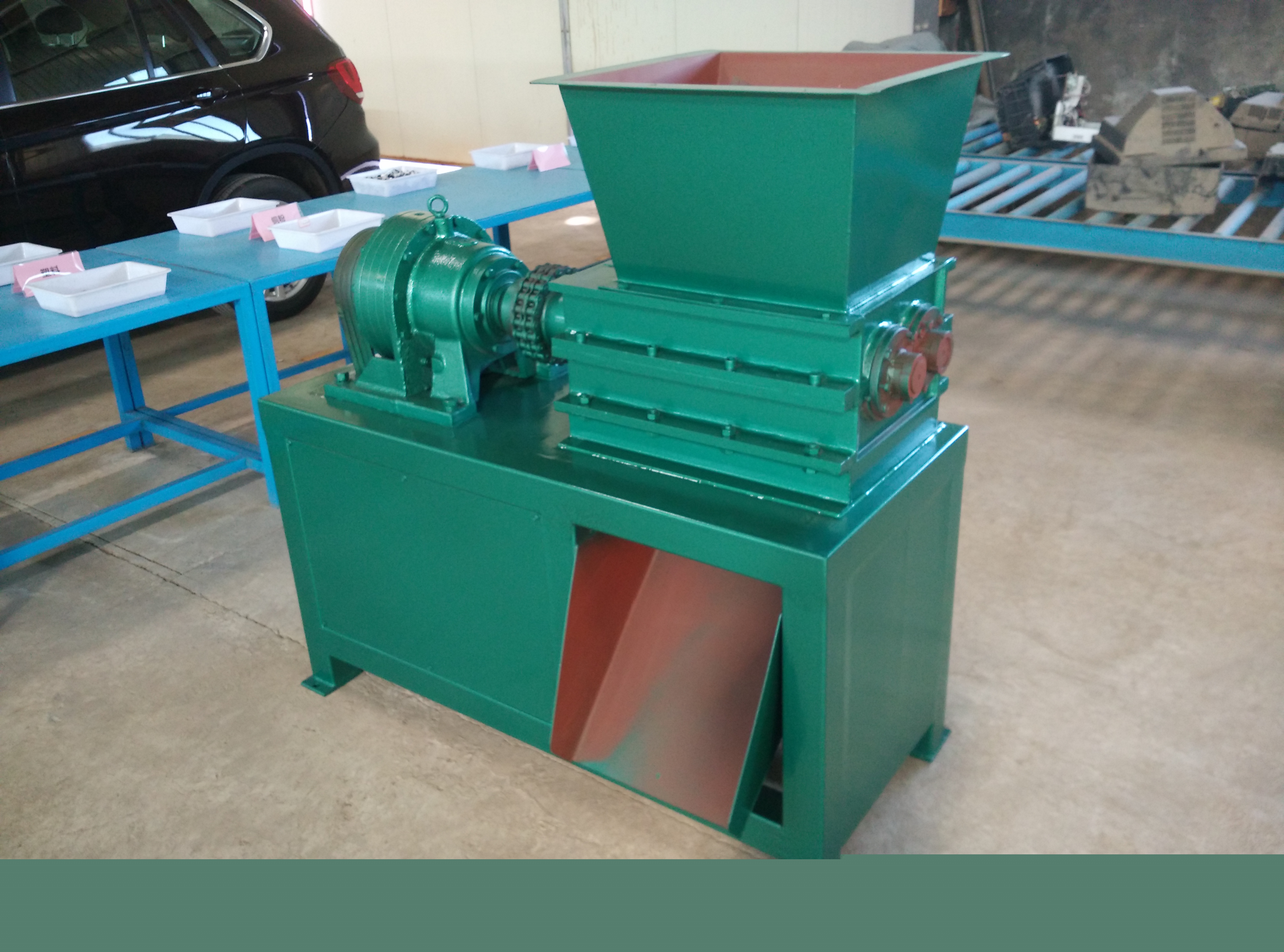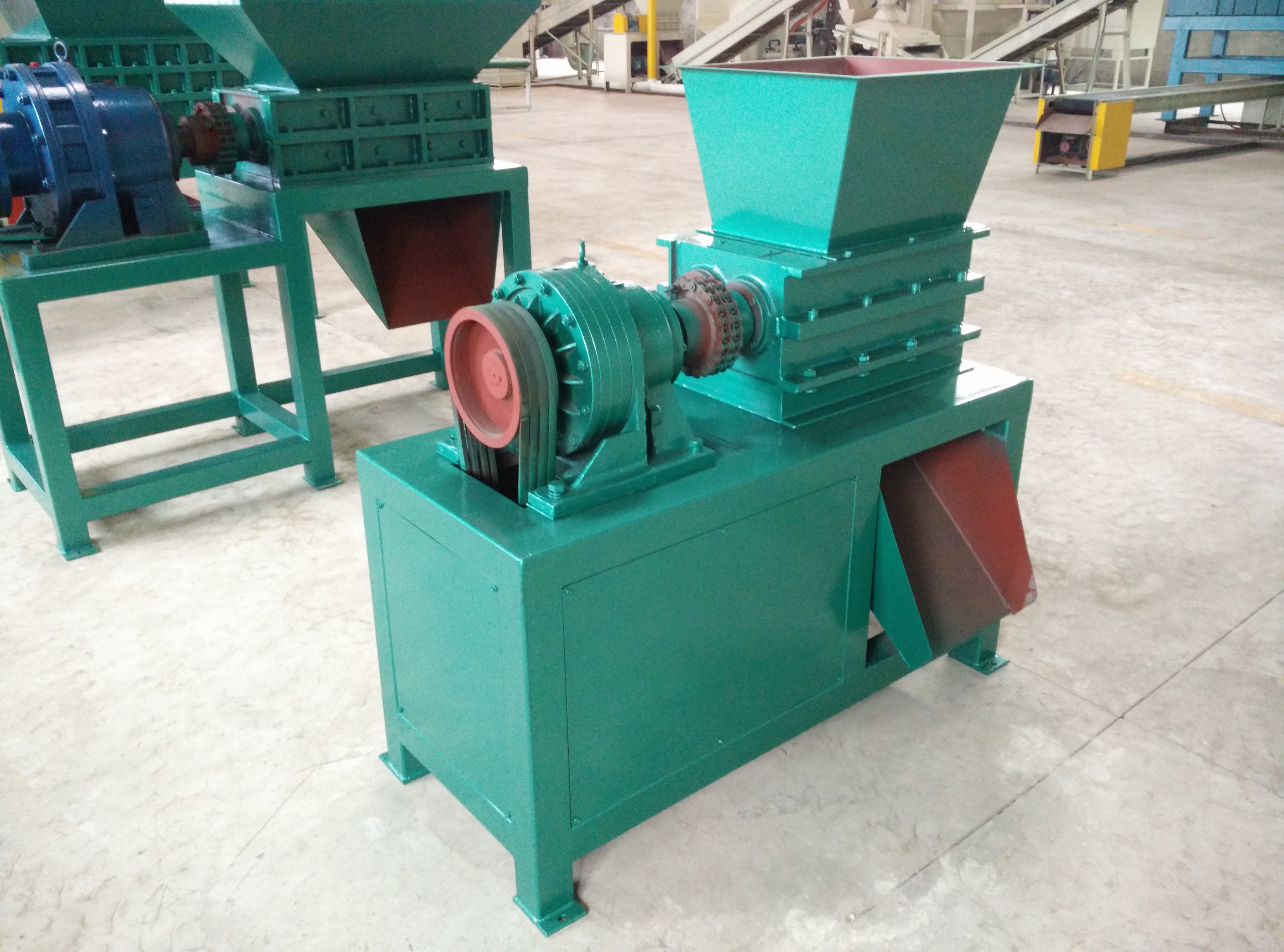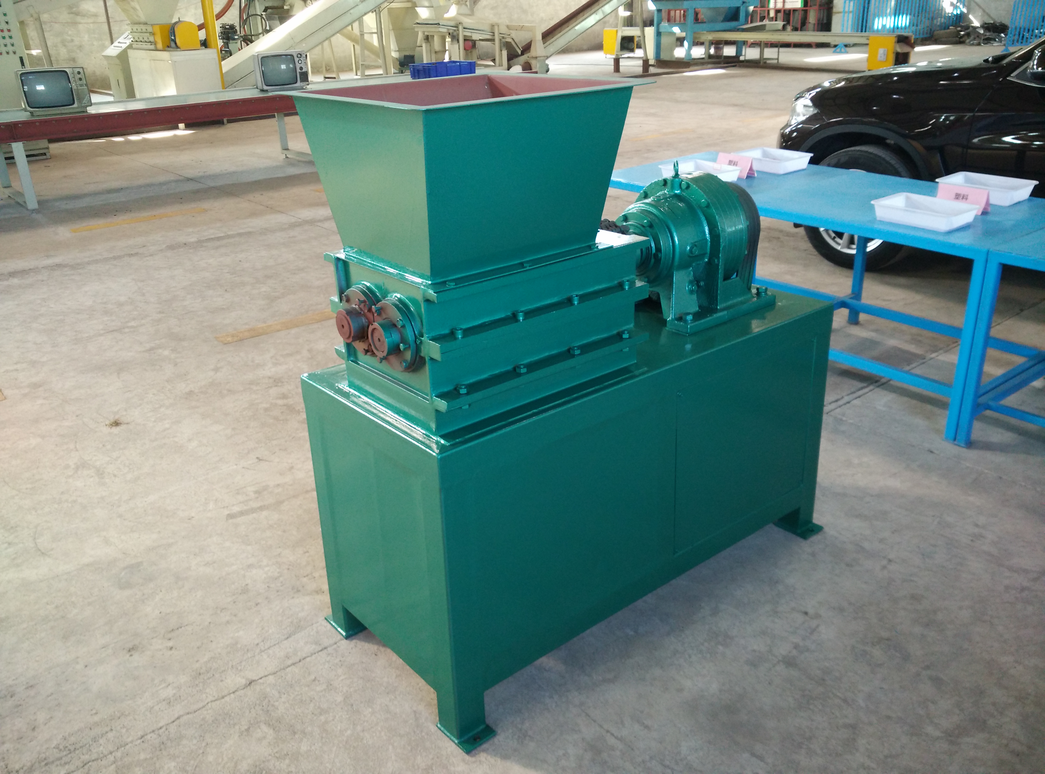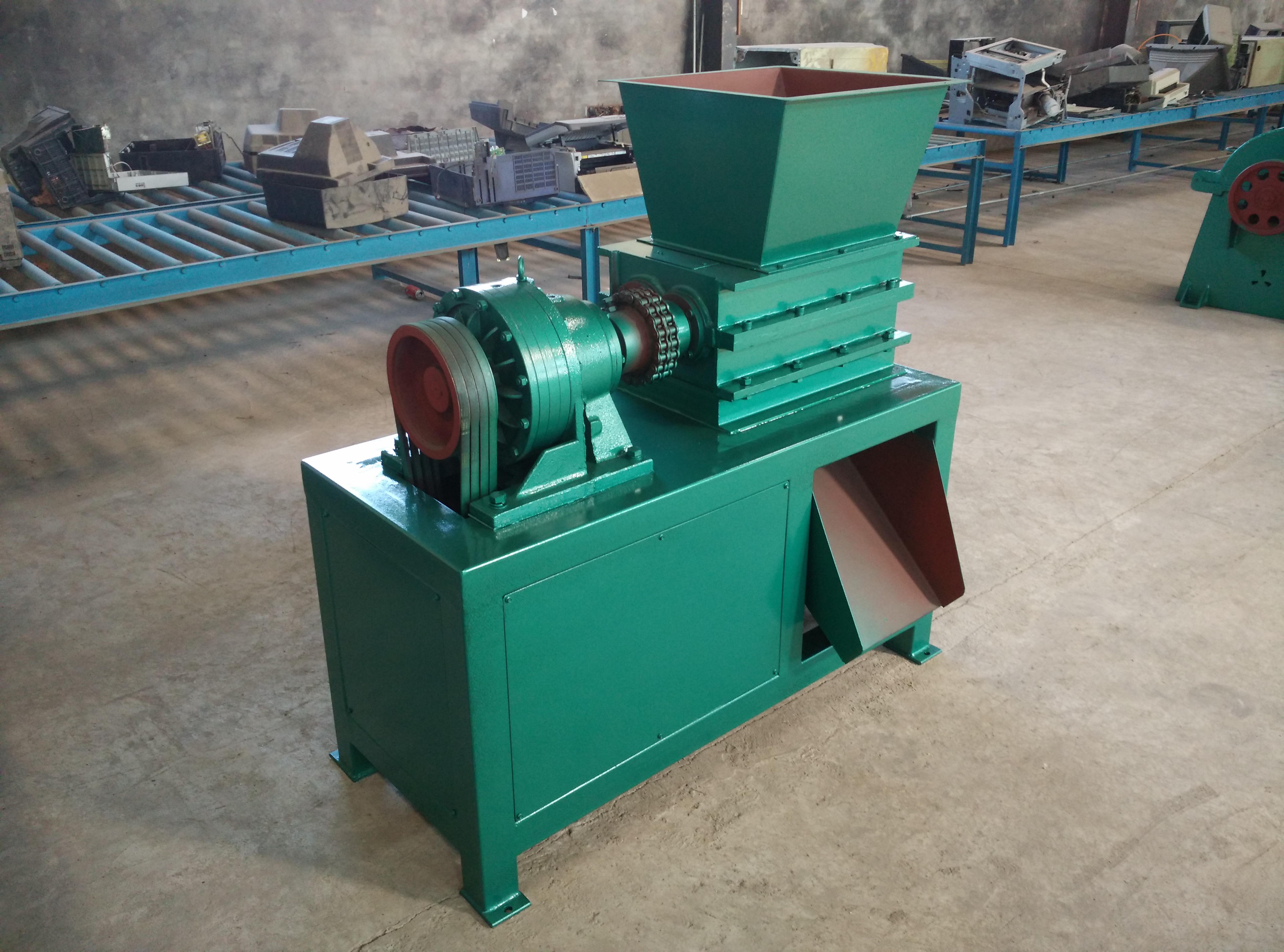 該機(jī)設(shè)計(jì)新穎、噪音低、扭矩大、用途廣,在破碎過程中,具有拉切、扯斷、擠壓、自動退料,能使各種塑料、廢電線、電纜、印刷電路板、廢舊冰箱、洗衣機(jī)、空調(diào)、電視、電腦等家電及打印機(jī)、復(fù)印機(jī)、傳真機(jī)等辦公用品。廢舊橡膠、工程樹脂、城市廢物、木材、管材、粗大塊料破碎之用,每小時(shí)處理量1-10噸。