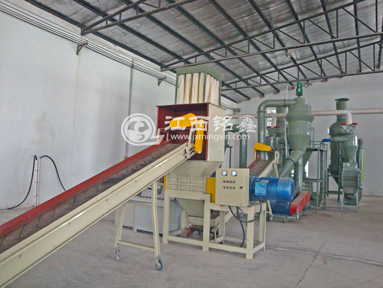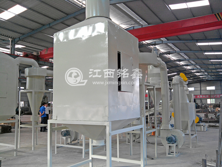 設備采取了干式破碎、粉碎,使廢舊電路板成為金屬和樹脂纖維末混合物,然后通過高壓靜電分離器將金屬與樹脂等非金屬分離的工藝路線。設備優(yōu)點,噪音小、無需水、無粉塵污染、節(jié)約動力,節(jié)約人力、絕無廢棄物,金屬及非金屬99%充分回收利用。為防止加工過程中的粉塵污染,設備采用三合一除塵裝置,除塵裝置共有三級除塵:旋風除塵、布袋除塵和空氣凈化器除塵,有效地解決了粉塵污染問題,各項指標均達國家標準。
